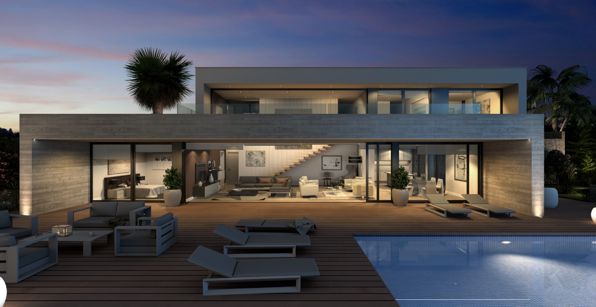 Overview: LAST 2 units available ! Promotion of 8 modern new construction villas on one floor with a large plot of 397 m2 in Fortuna, near the Balneario de Leana. Ibiza style villas divided into 2 white cubes, with exposed natural stone walls. Private pool of 6x3 m with an extra cost of 10,000 eur. The house is located in a quiet rural environment without noise, with the Leana Spa 1 km away, with several hotels and restaurants around. The town of Fortuna is less than 3 km away for day-to-day shopping and the city of Murcia is 25 km away where there is a wide gastronomic and leisure offer..