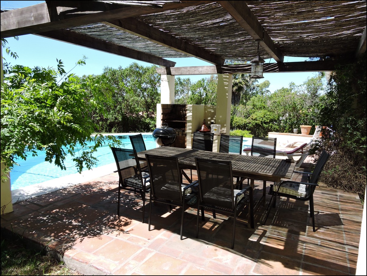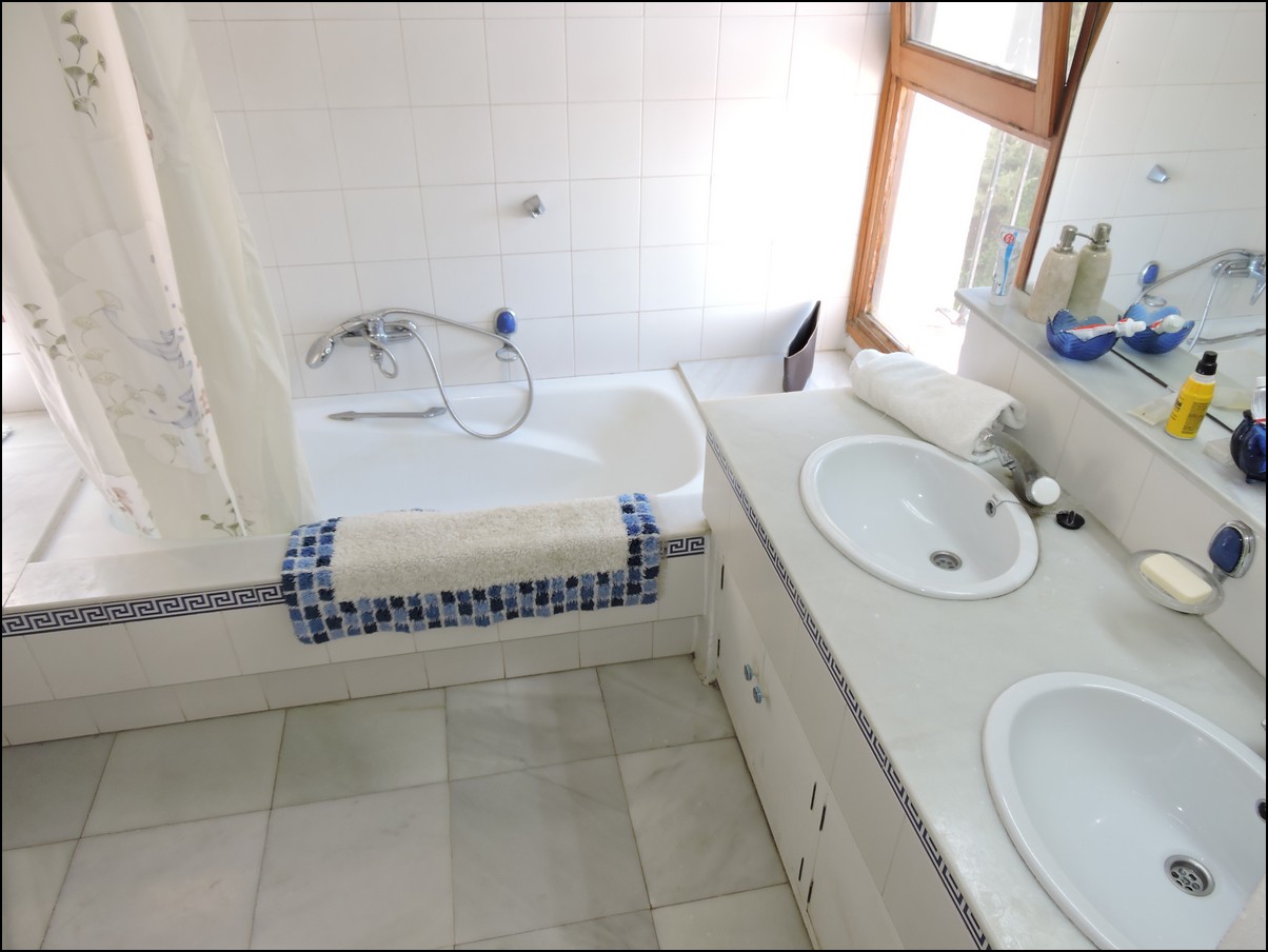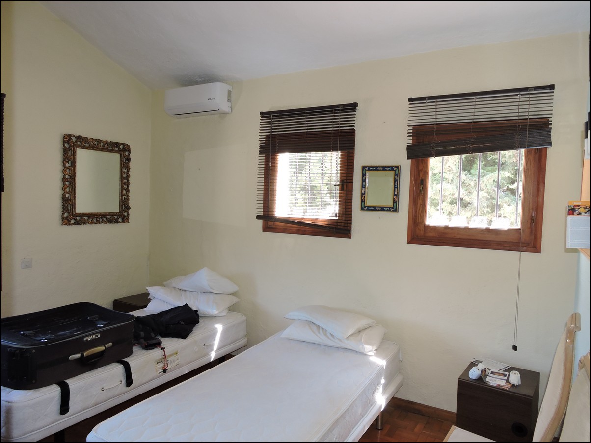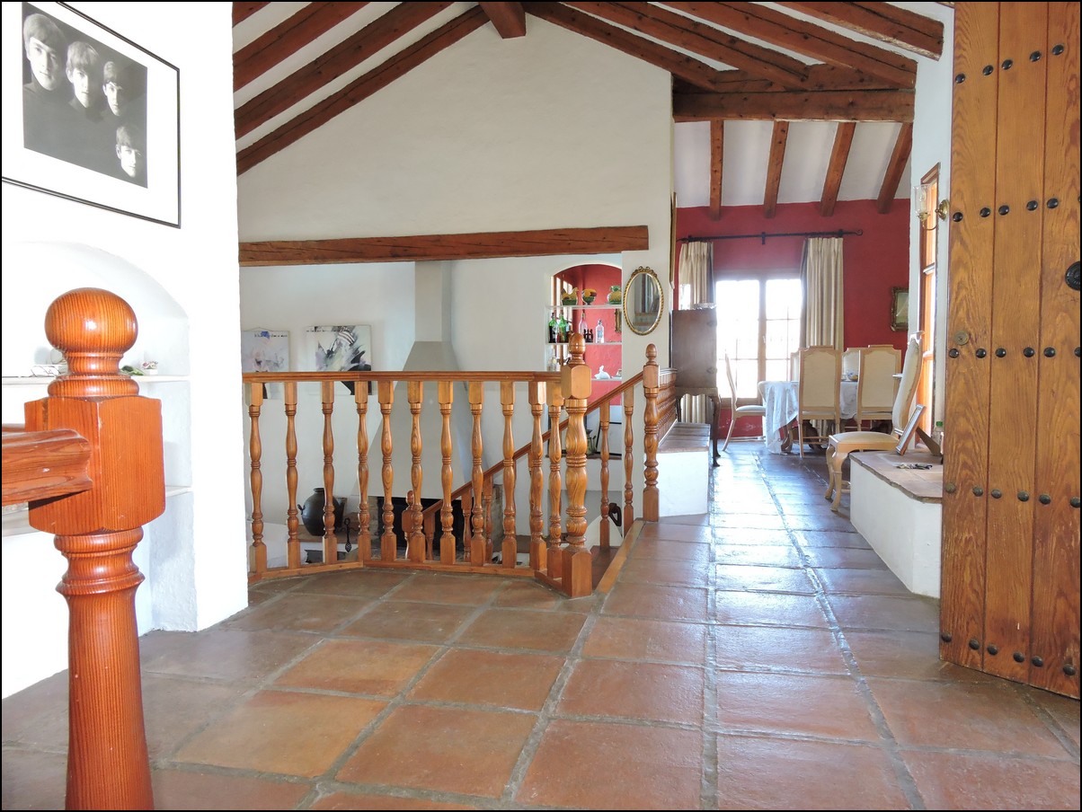 • Overview: Large 5 bed / 3 bath villa in the exclusive urbanisation of Don Pedro Estepona, located in an ideal and very private location, but close to Estepona, Sabinillas, Marbella or Gibraltar. Amazing architecture in this high standard 80s independent villa with private pool and with sea views! Total plot is 1520M2 and the house is built 274M2 + another downstairs studio. The studio is about 60M2 and has its own bathroom and separate entrance. The main house has a total of 4 bedrooms and 2 bathrooms. They are all very large and with built-in wardrobes. Large living room with a beautiful big fire place that will heat the whole house in the winter period and ceilings of about 5meters high, fantastic architecture, lots of natural light. Perfect for a Spanish home. The house is situated on different levels, so you will walk up and down some stairs when you want to go from the living to the kitchen or from the entrance to the bedrooms. Next to the already large living space you have another separate area to quietly read a book and enjoy this wealthy feeling. From the living area you walk out into your private plot with private swimming pool. Very nice entertainment area with built-in barbecue and even some sea views! The garden itself is lovely, green, well taken care of and not of huge maintenance. Up from the living room you have a dining area and a large open fully fitted kitchen; this would need some modernization, but is nice and fully functional. All bedrooms have air condition installed. A beautiful and spacious villa in a quiet location, only 5 minutes drive from the beach. The urbanization is very secure and has security cameras. Outside space for two cars underneath a covered parking area and the house will be sold fully furnished. Easy to visit, if you have any further questions, do not hesitate to contact us now..