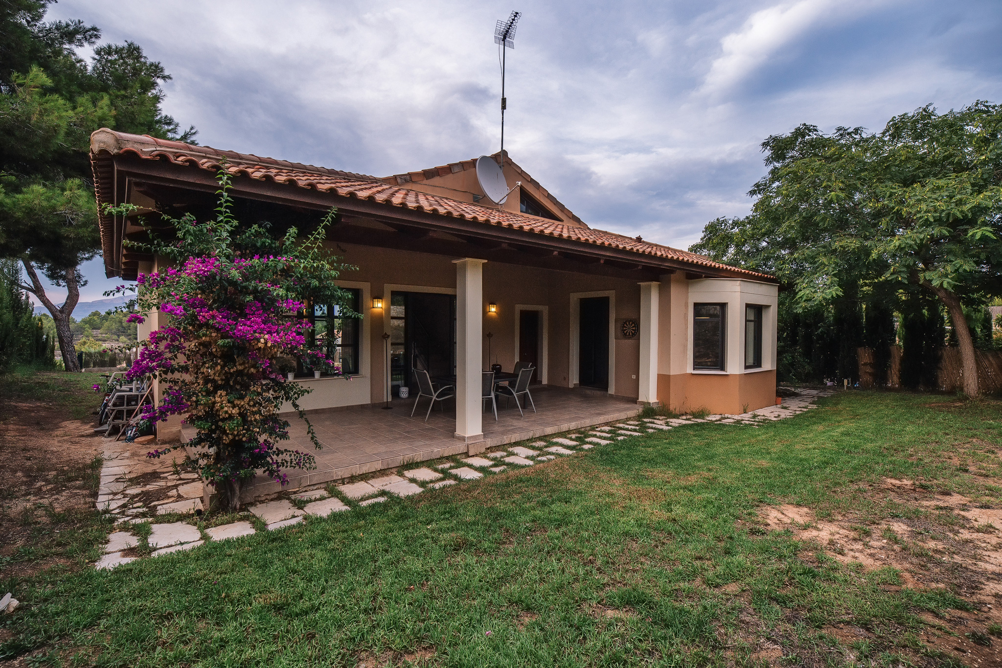 • Overview: An amazing opportunity for sale: 395.000 euro a well maintained property but without landscaping gardens and pool. For less than 20.000 euro extra investment you have a pool and garden to your desires. The villa: 180m2 living, 1000m2 plot and 60m2 terraces has 3 spacious bedrooms, livingroom with high ceilings, fireplace, gas central heating, alarm, 2 bathrooms, spacious kitchen fully equiped, covered and semi covered terrace. The urbanisation is provided with streetlights, pavements, all services underground such as water, electricity and gas. The villa comes fully furnished. worth a viewing. Also available as Winter let from now till end May 2019 for 800 euro per month plus bills. Holiday available: June, July, August, from 1000 per week..