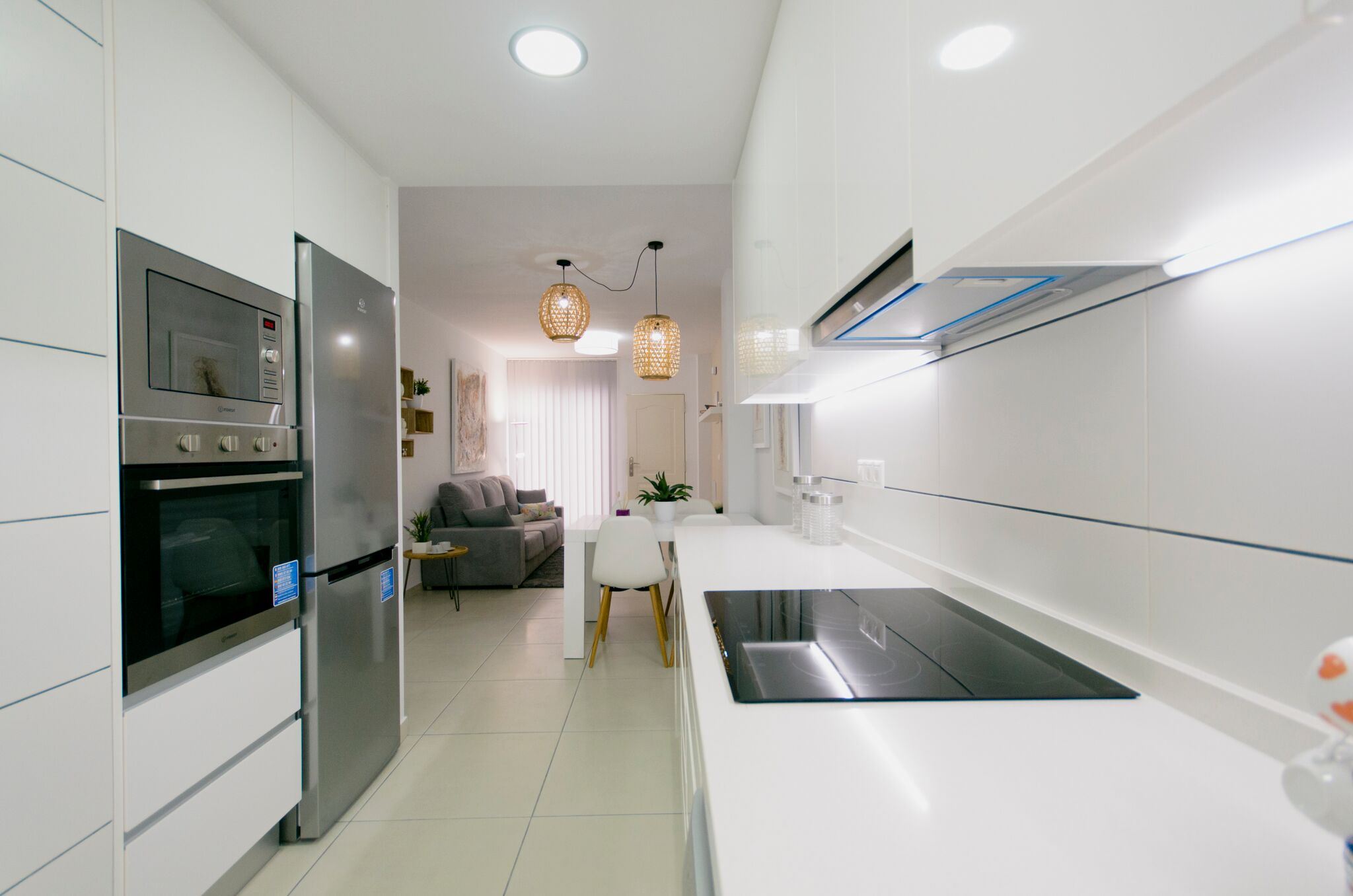 • Overview: Bedrooms: 2Bathrooms: 1Parking: Single GarageOutdoor Area: Terrace (s), Sea View, PoolBeach 0.9 km Airport 22.7 km 2 1Summary FREE FURNITURE PACKAGE AND DOUBLE GARAGE IN THE MONTH / MARCH / MONTHS! The building is located in the excellent location of El Pinet, in La Marina, very close to the beautiful beaches and vast natural park of pine trees. only 5 minutes from the village, 10 min from the beach, and only 20 minutes from the airport.The apartments are three floors; the ground floor which have a large terrace at the front and rear patio, the first floor have a terrace and the upper floor which have a terrace and private solarium with pantry.The apartments are all with two bedrooms and a bathroom, separate kitchen, living / dining room, and terrace, washing machine, and range from 69 m² to 80 m²In total there are 136 apartments (in small blocks of 6 each) There are only a few for sale Prices from € 95,000 to € 165,000.