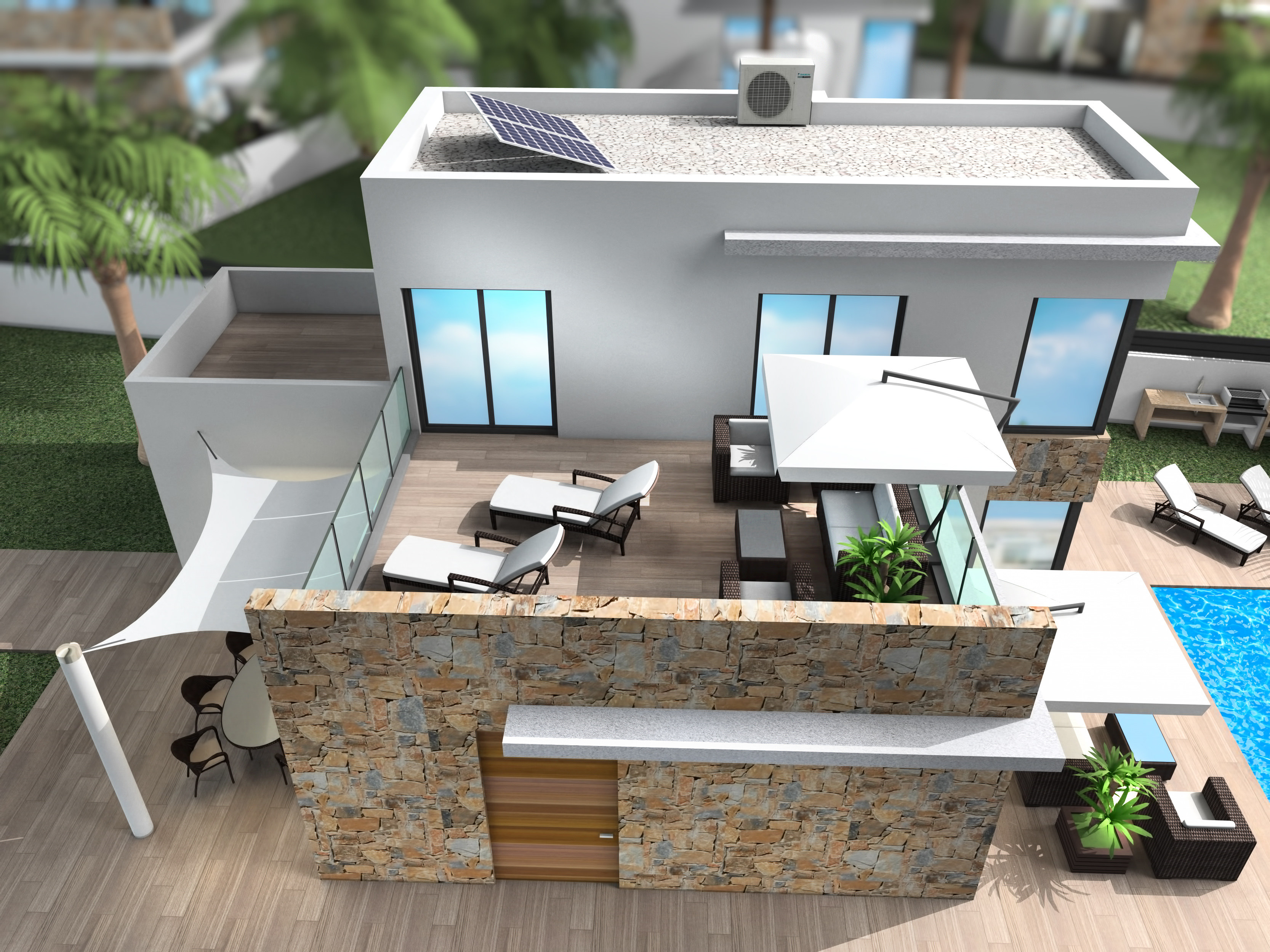 Overview: Small-scale project in one of the most beautiful locations of Finestrat Hills. Detached villas on spacious plots ranging from 442 m² to 554.65 m² with an infinite view. FINESTRAT HILLS is a residential complex of 40 houses with 3 different designs of high tech detached villas. Villa type A is an independent house with 3 bedrooms, 2 bathrooms on one level. The kitchens are equipped with equipment. The bedrooms have fitted wardrobes, underfloor heating in the bathroom and electric shutters in all homes and double glazing ...